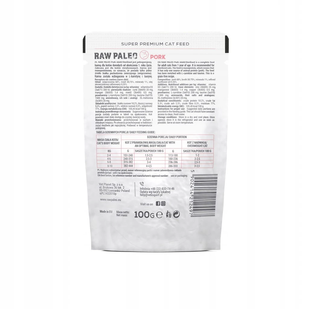 Karma mokra dla kota 100 g kitten pork - VetExpert Raw Paleo Cat