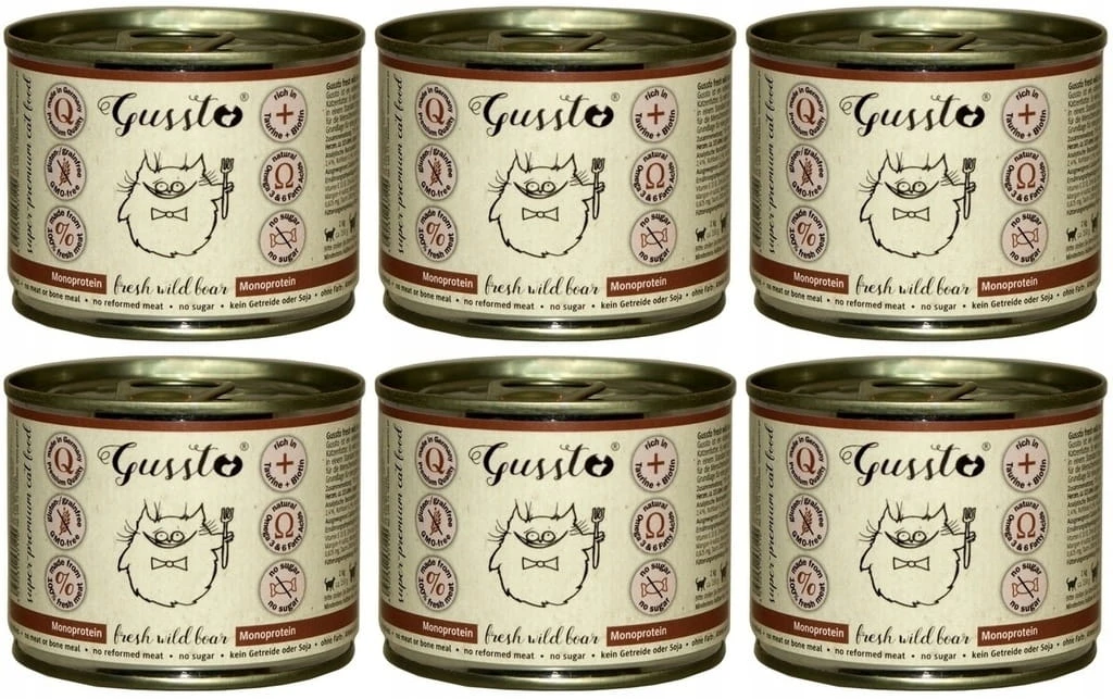 Karma mokra dla kota 6 x 200 g fresh wild boar - Gussto Cat