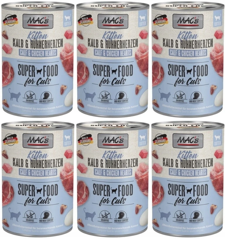 Karma mokra dla kota 6 x 400 g kitten cielęcina i serca - MAC's Cat