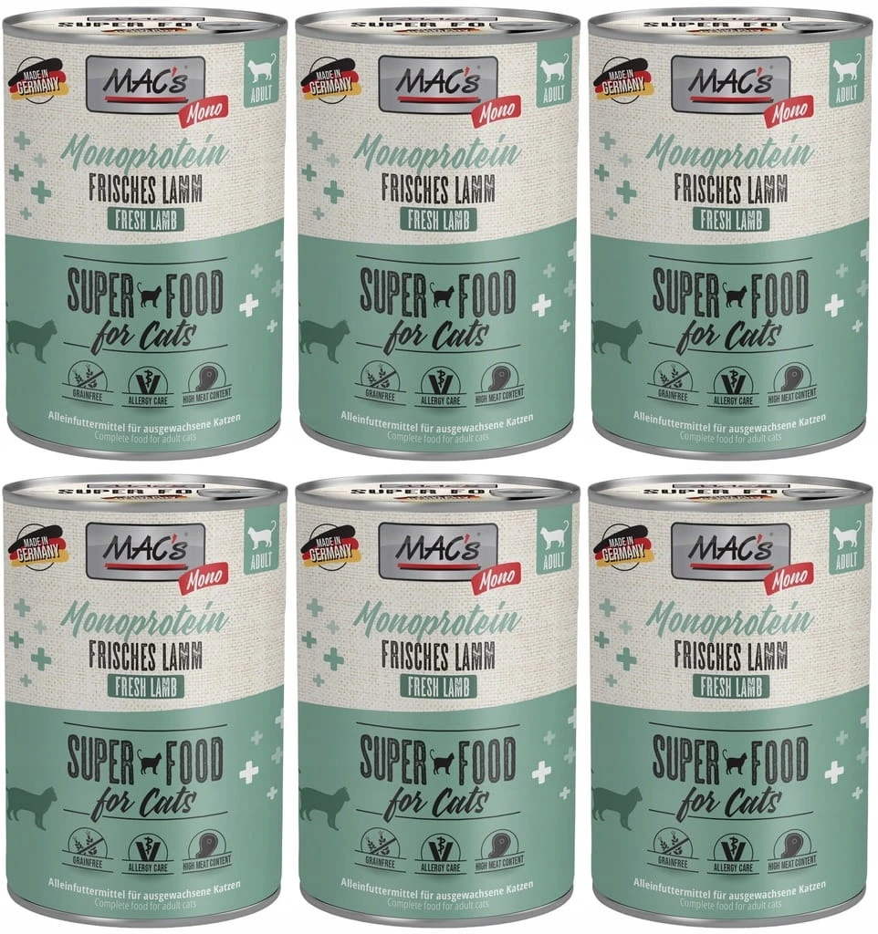 Karma mokra dla kota 6 x 400 g monoprotein jagnięcina - MAC's Cat