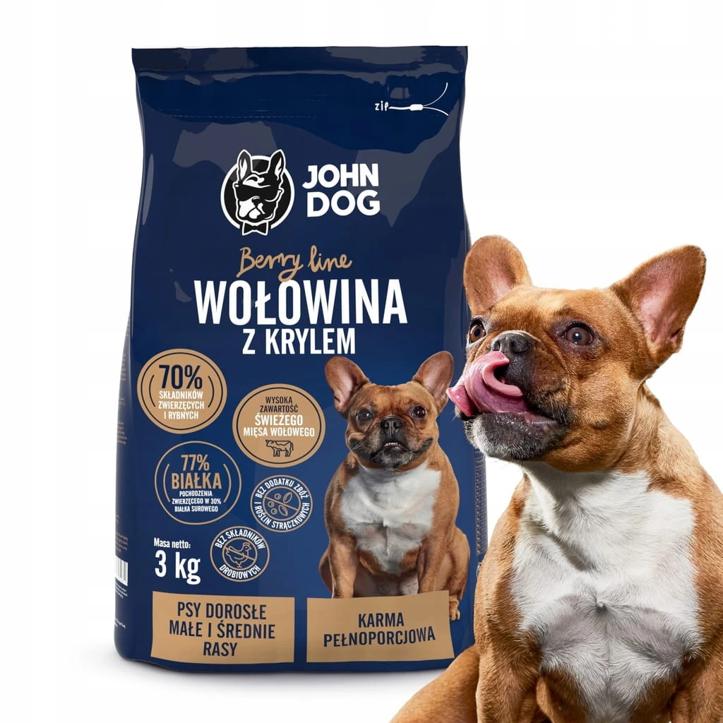 Karma sucha dla psa 3 kg berry line wołowina z krylem dla ras małych i średnich - John Dog